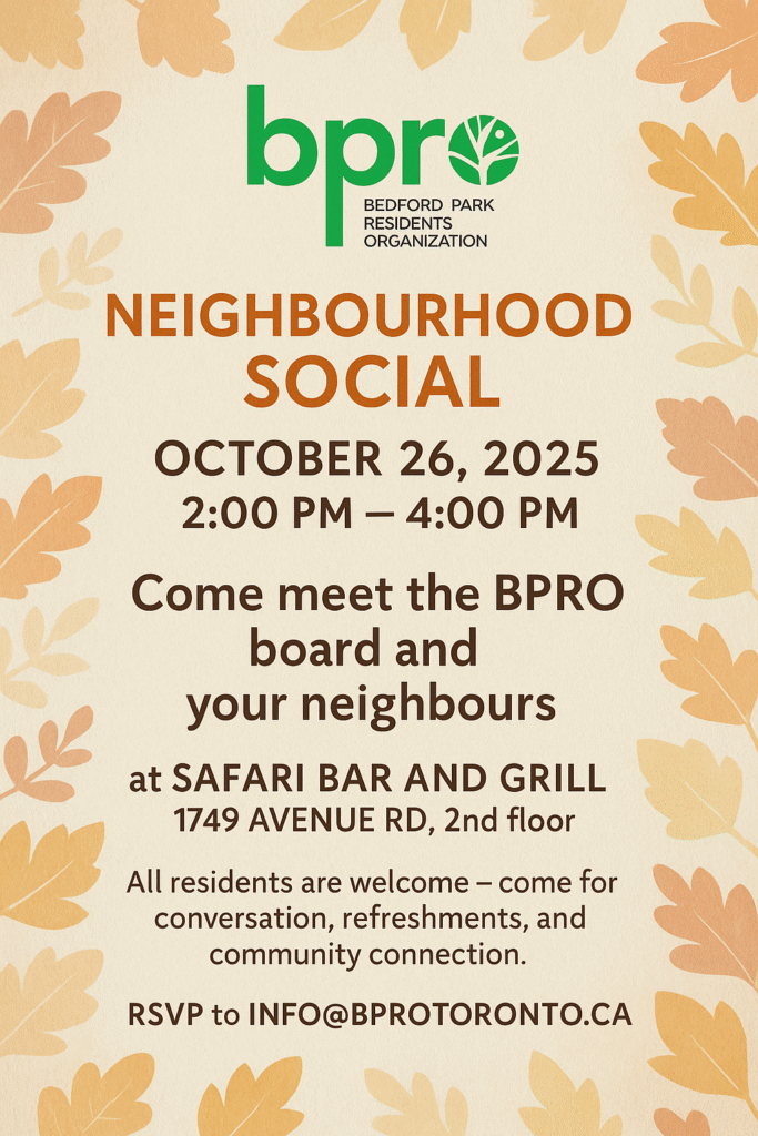 BPRO is a volunteer-run organization, and we need your help. If you are interested in joining the board, please email us. Serving on the board is a great way to get involved with your community and help us continue our work. It’s also a great way to get to know more of your neighbours. The board meets virtually once per month, taking a break for the summer. We’re looking forward to hearing from you!
