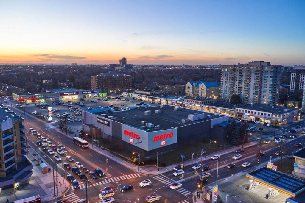 Developers have submitted plans to the city to redevelop the plaza at Bathurst and Lawrence. Notably, this is Toronto’s first urban shopping plaza, over 70 years old. The plan is for multiple residential towers, up to 40 storeys, with 2,700 units. The plan also includes a daycare and a new public park. The project is expected to happen in multiple stages, but the timing is not yet known.