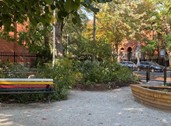 In terms of our neighbourhood, we identified the need to improve the parkette on west side of Jedburgh at Woburn. Councillor Mike Colle’s office is willing to help and has asked for ideas. To that end I took some photos of a park I am familiar with near Bloor and Spadina of a similar size, (see above).